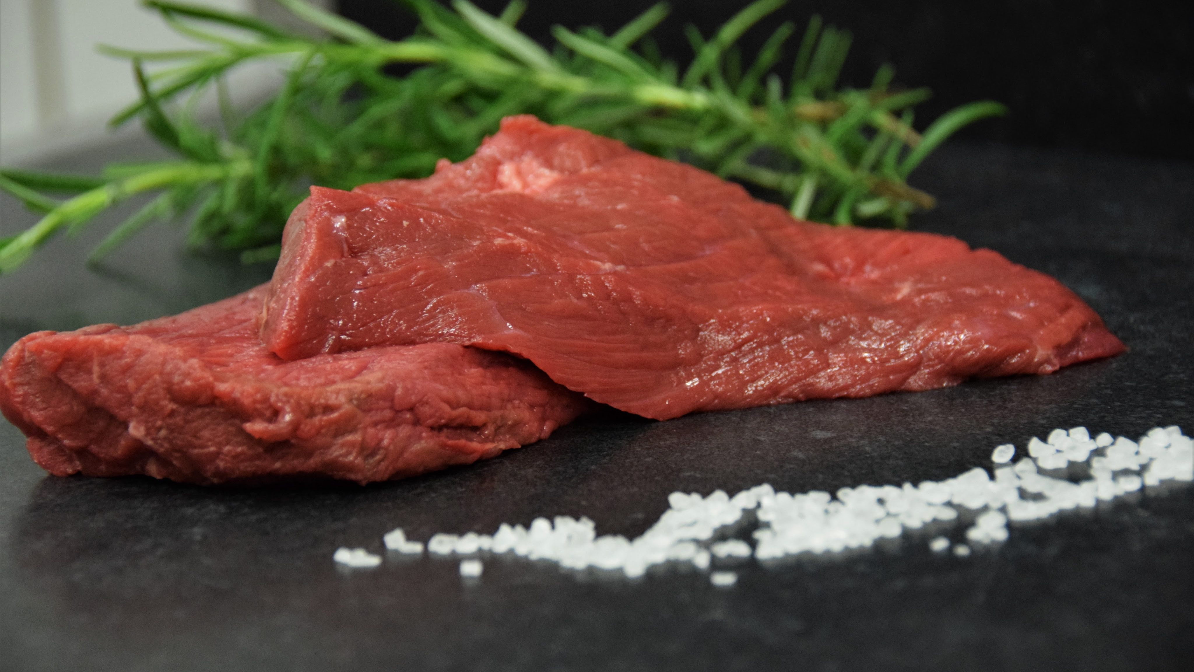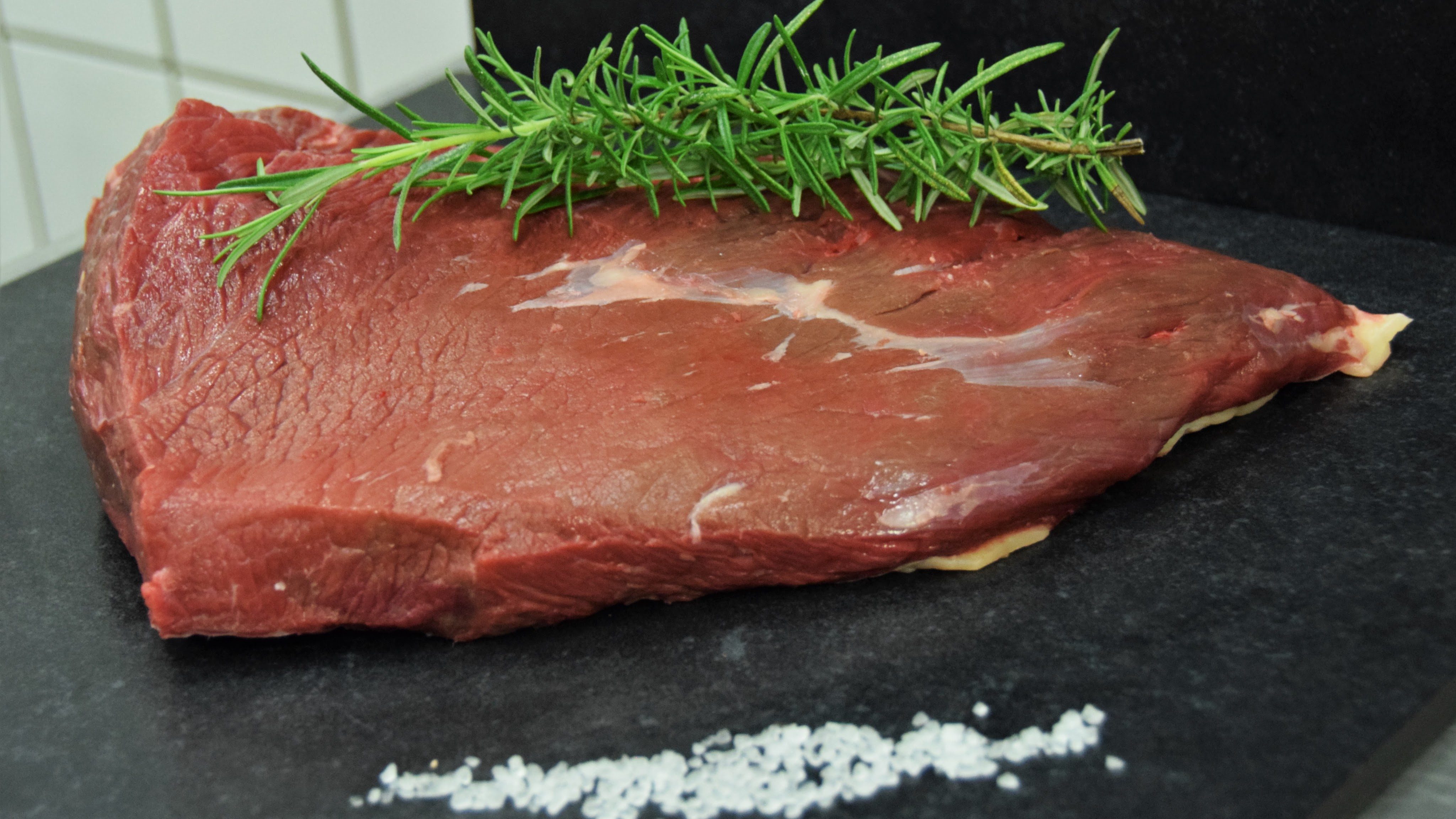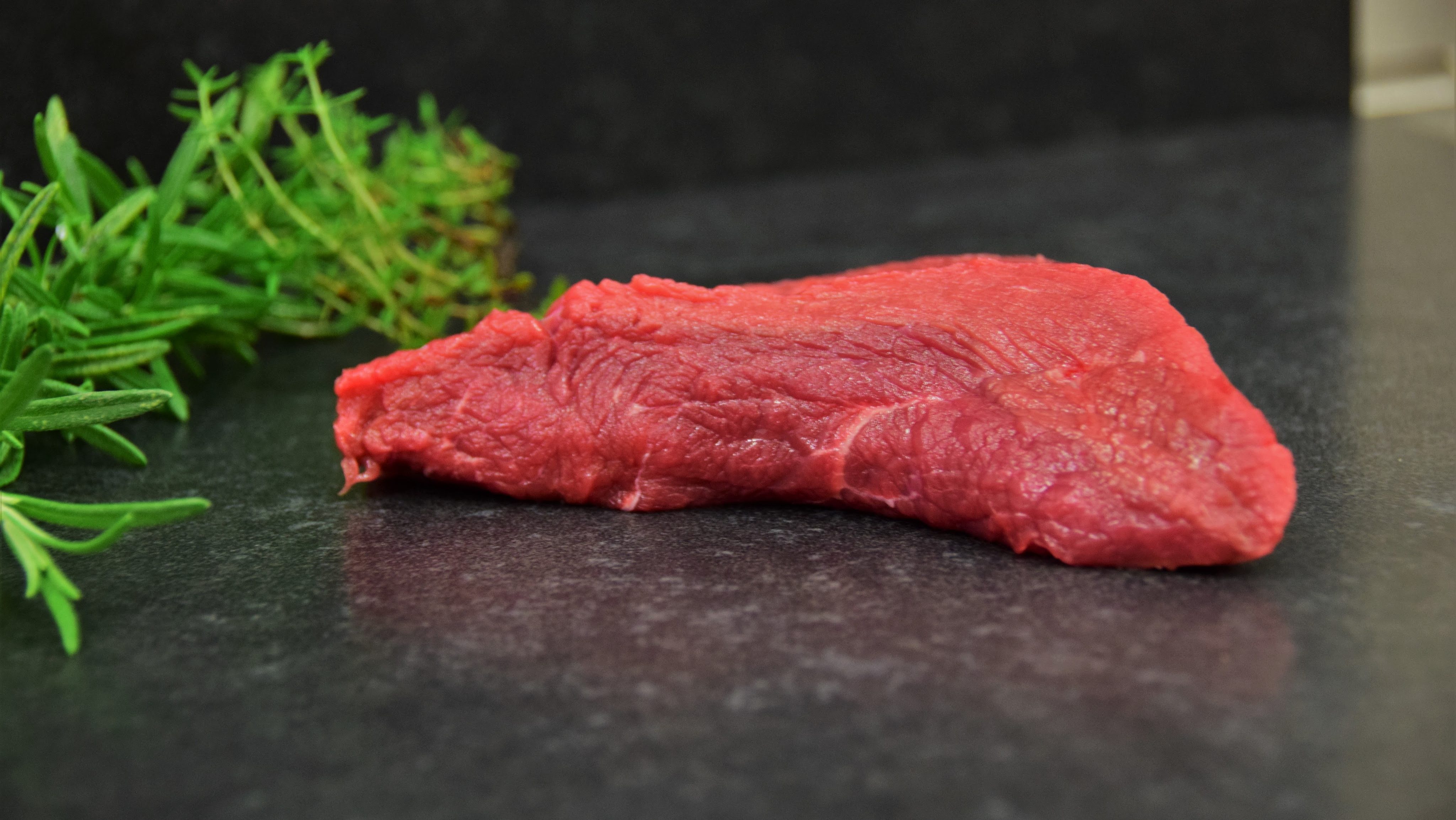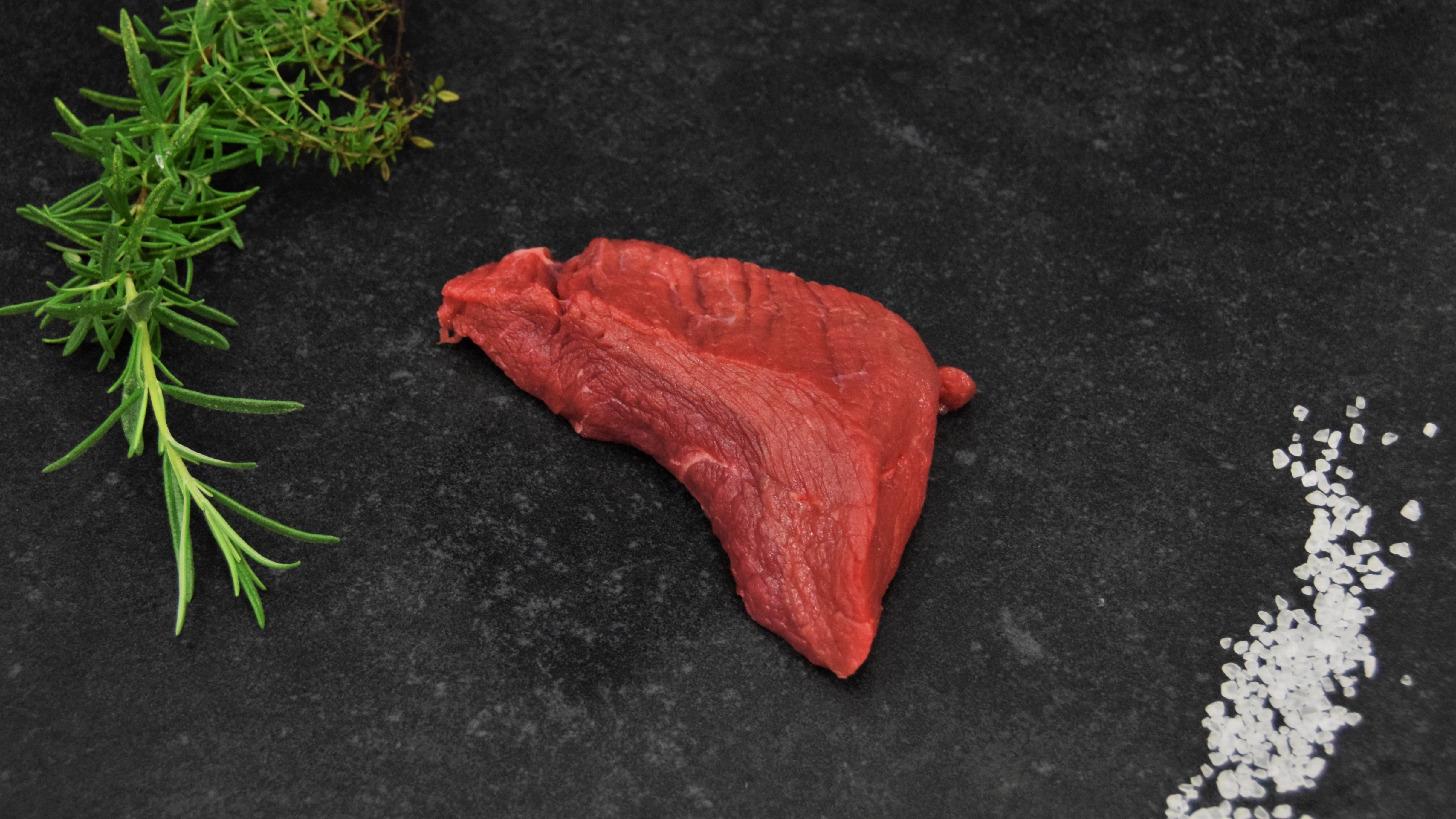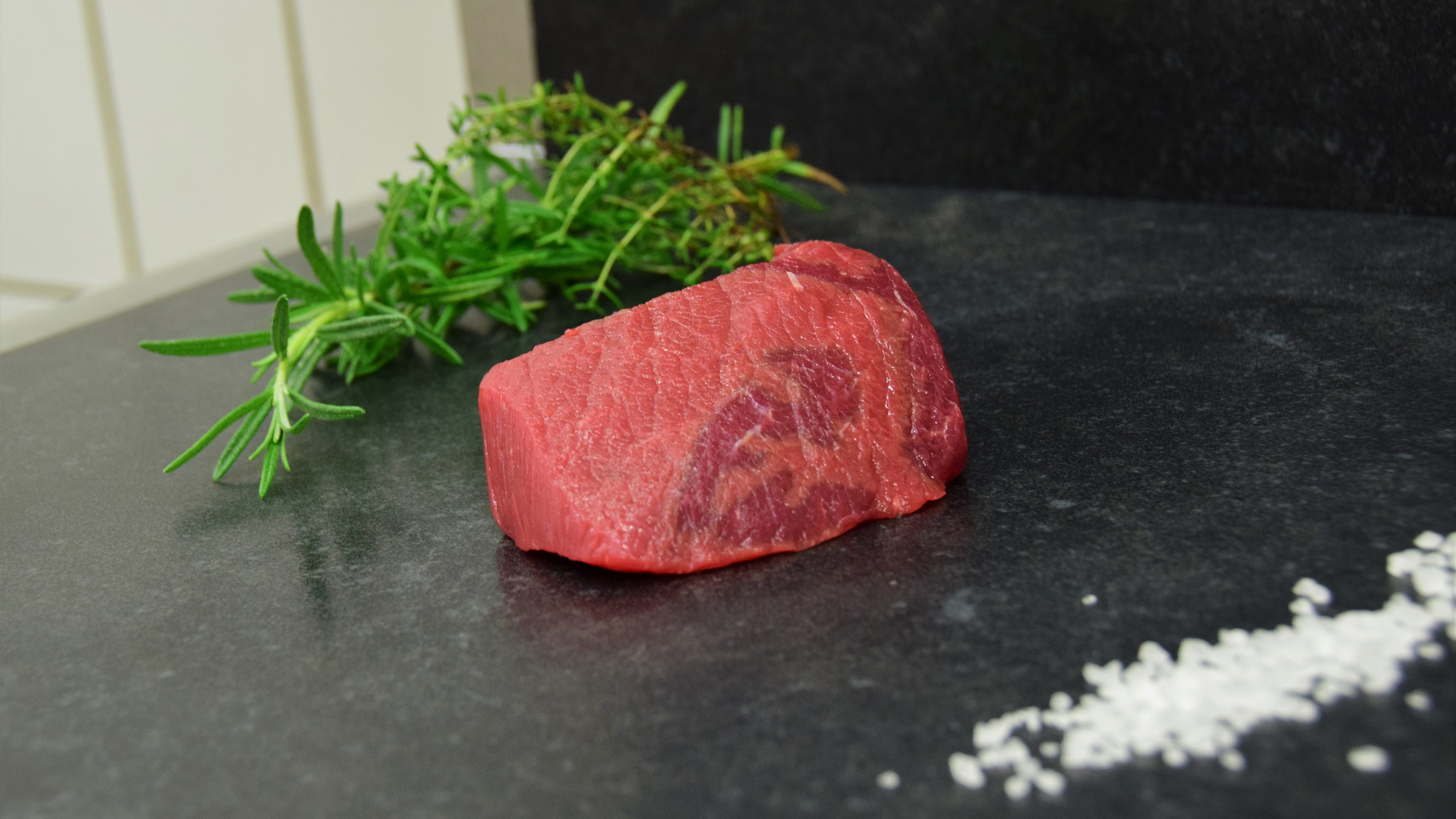 Heerlijk een magere stuk vlees van de rund. Even insmeren met zout en peper en dan kort in de pan, zodat ze nog een beetje rosé zijn van binnen!